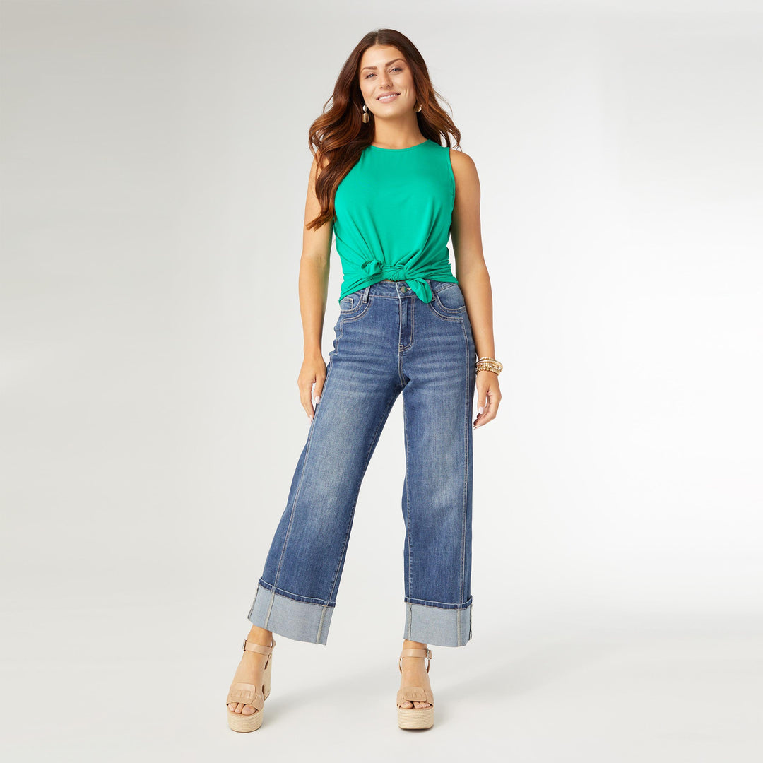 EverStretch Wide Leg Ankle with Raw Contrast Bottom Denim Jeans